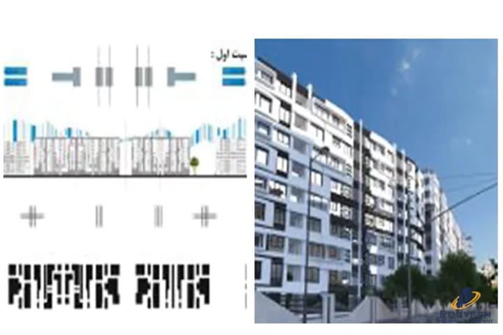 پس از بررسی گزینههای کانسپتهای حجمی و انتخاب گروه رنگی، کانسپت اول (مترو) با توجه به نوع پروژه (به صورت انبوه سازی) و صرفه های اقتصادی و روش های اجرایی متناسب با این نوع از پروژه ها تکمیل گردید.